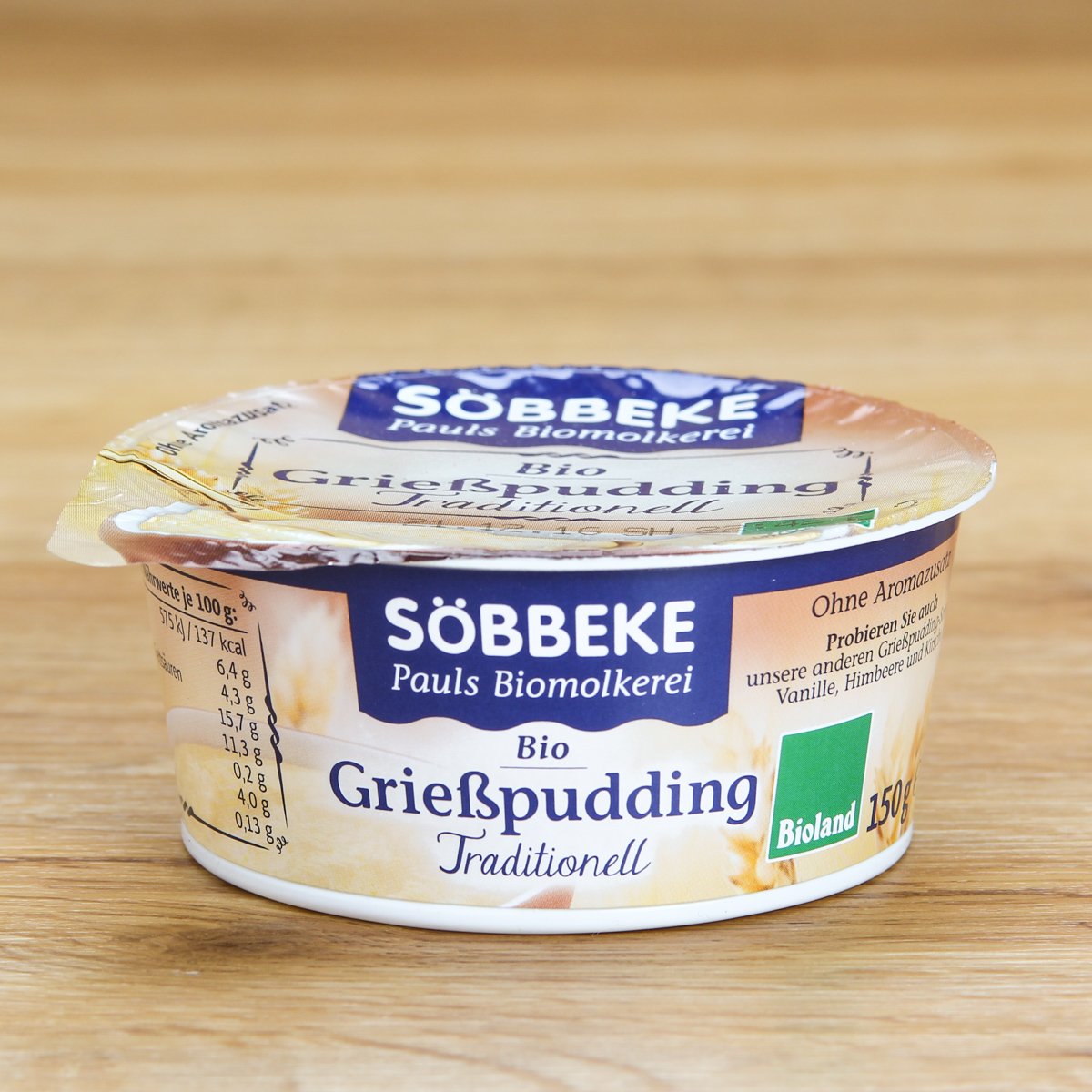 Den besten Grießpudding kocht mit Sicherheit die Oma. Aber es geht auch einfacher. Söbbeke - Die Bio-Molkerei! hat jetzt vier Sorten köstlichen Grießpudding im Sortiment. So kann man den leckeren Grießpudding überall und immer genießen, als Nachtisch, als kleine Zwischenmahlzeit oder bei der Arbeit. Dieses Dessert zeichnet sich durch seine cremige Konsistenz aus und besticht mit viel frischer Milch, Hartweizengrieß und einem Schuß guter Sahne. Mit seinem 150 g Becher hat der Grießpudding eine ideale Größe. Es gibt ihn in den Sorten Traditionell, Vanille, mit Himbeeren und mit Kirschen. In den beiden Fruchtsorten wird der Grießpudding im Zweikammer-Becher angeboten. Hier können die Liebhaber des unverwechselbaren Fruchtgeschmacks ihre ganz persönliche Mischung selber herstellen, indem man ganz einfach die Ecke mit der Frucht umknickt und das köstliche Fruchtmus auf den Grießpudding gibt. Alle Sorten werden, wie alles bei Söbbeke, ohne Zusatz von Aromen oder weitere Zusätze hergestellt,