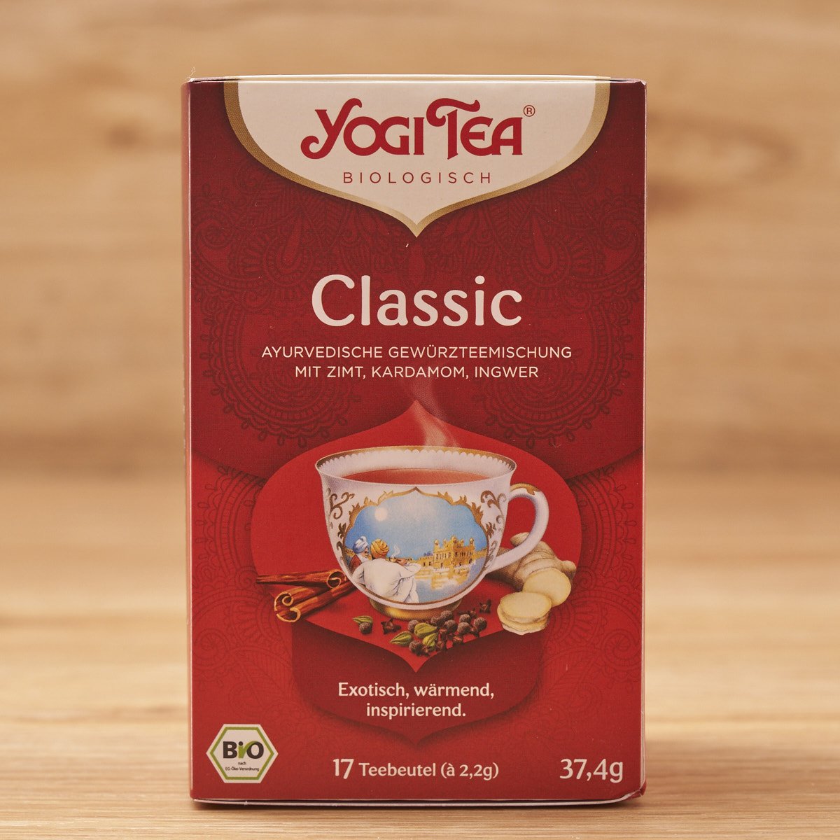 Der Gewürz-Tee Yogi Tea® Classic Bio ist eine wunderbare Mischung aus süßem Zimt, Kardamom, würzigem Ingwer, Nelken und Pfeffer und inspirierte Generationen von Yogis sowie die Marke YOGI TEA® und legte den Grundstein für die Vielfalt unserer ayurvedischen Teemischungen. Am besten gesüßt und mit Milch oder einer veganen Milchvariante genießen.