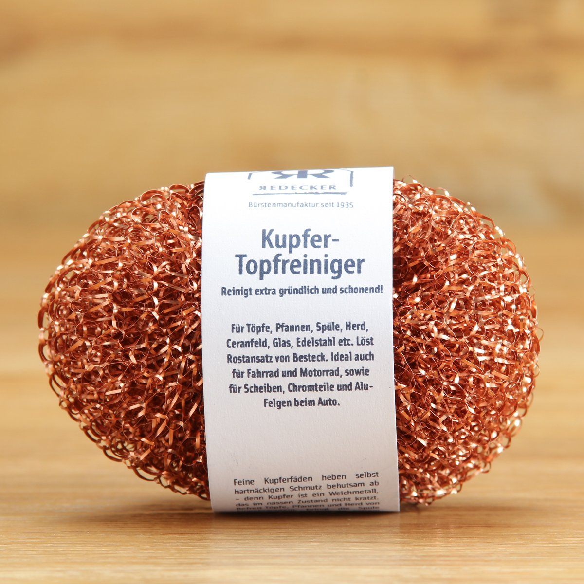 Feine Kupferfäden heben selbst den hartnäckigen Schmutz behutsam ab ? denn Kupfer ist ein Weichmetall, das nicht kratzt. Es hinterlässt keine Kratzer auf Emaille und Ceranfeld und bringt Ihre Spüle auf Hochglanz! Das doppellagige Material ist extrem langlebig und kann in der Waschmaschine bei 60 Grad gewaschen werden (bitte in ein Waschnetz oder eine Socke stecken). Nicht auf Teflon oder Teflon-ähnlichen Flächen anwenden. Umweltgerecht 100% recyclebar.