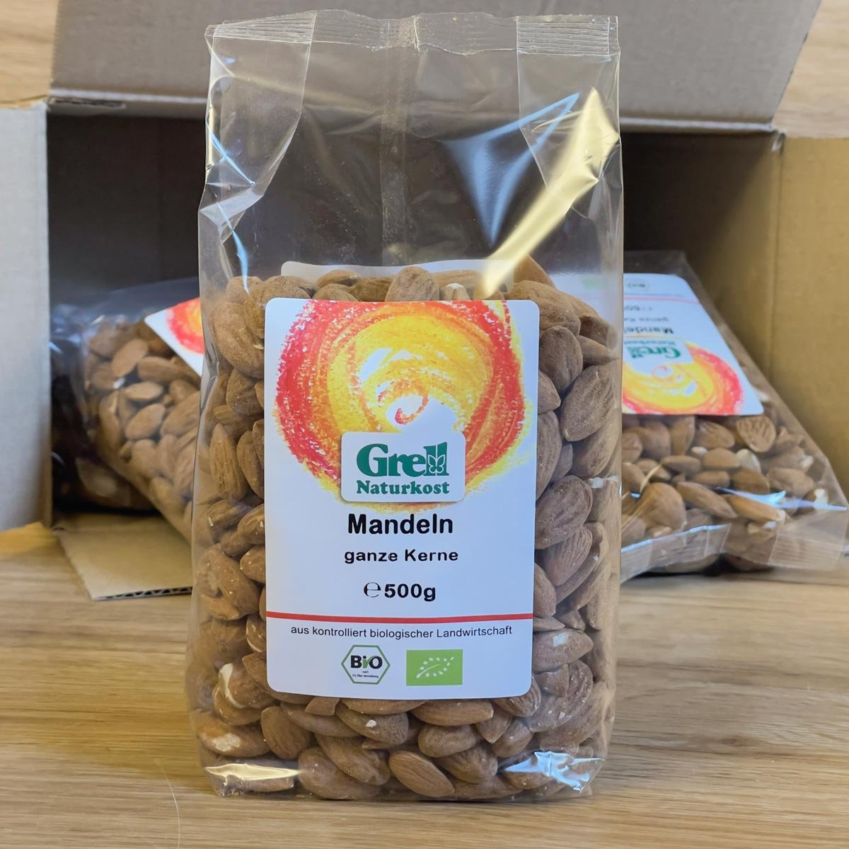 Bio Mandeln ganze Kerne. Pur zum Knabbern oder als Zutat in Müsli, Salaten, Aufläufen und beim Backen. Mandeln verfeinern Gerichte mit ihrem nussigen Aroma.
