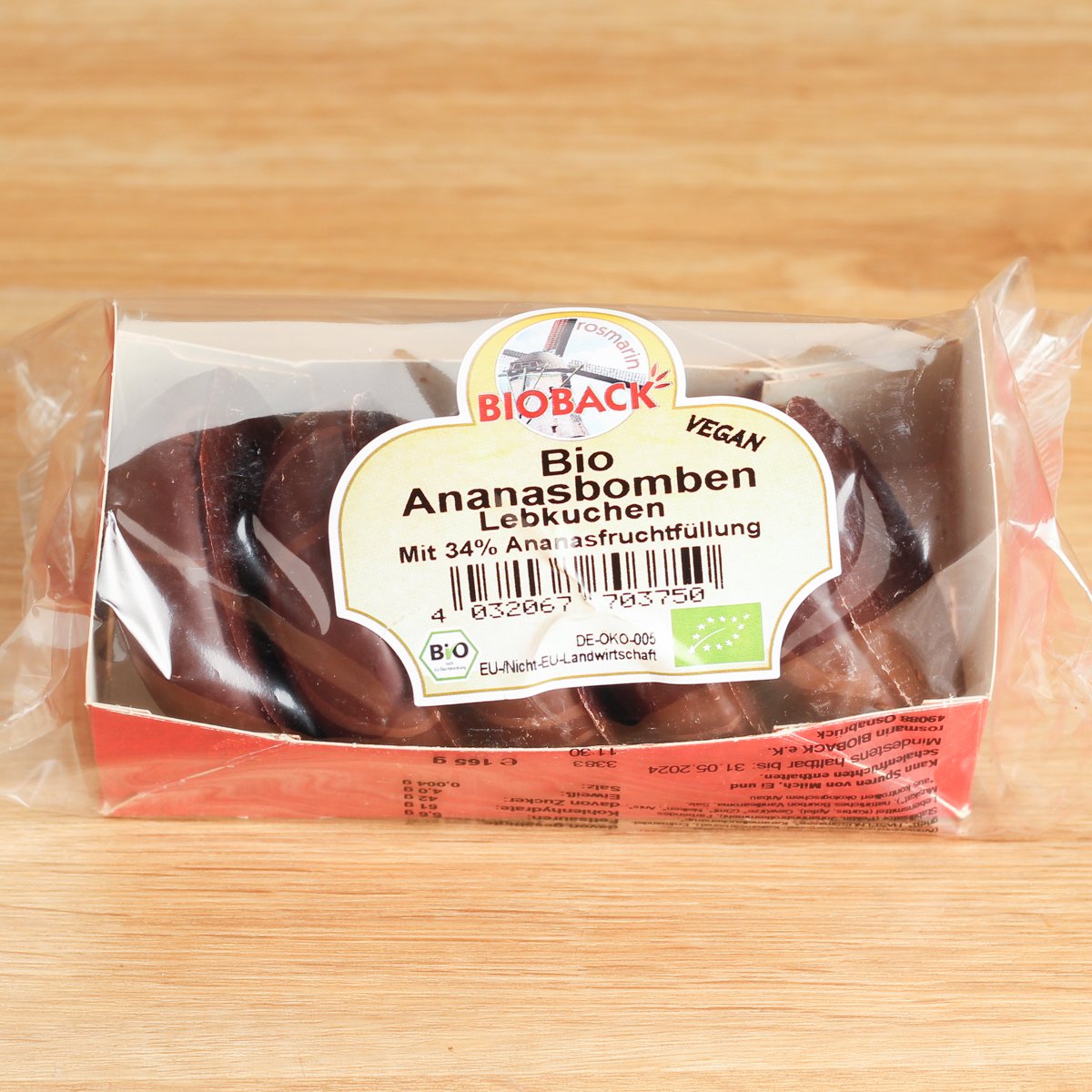 Rohrohrzucker*, WEIZENMEHL*, Ananassaft*, Kakaomasse*, DINKELMEHL*, Kakaobutter*, Palmfett* (ungehärtet), Säuerungsmittel (Zitronensäure, Weinsäure), Rübenzucker*, Reisdrinkpulver*, Backtriebmittel (Ammoniumhydrogencarbonat; Kaliumcarbonat), Erdmandelgrieß*, HASELNUSSMASSE*, Karamellzuckersirup*, Stabilisator (Pektin, Johannisbrotkernmehl), Färbendes Lebensmittel* (Kürbis*, Apfel*), Gewürze* (Zimt*, Nelken*, Anis*, Muskat*), natürliches Bourbon Vanillearoma*, Salz.