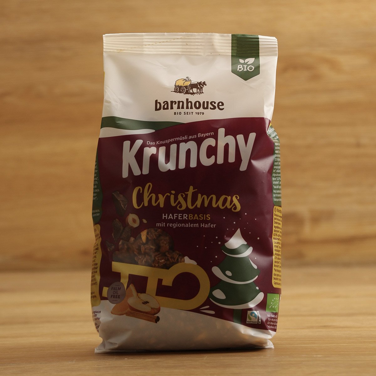 Krunchy Christmas beschert Ihren Kunden weihnachtlichen Knusper-Genuss mit all den köstlichen Aromen und Zutaten, die sie in dieser Zeit ganz besonders lieben: Schokolade, Nüsse, Äpfel, Orangen und dazu die typischen Lebkuchen-Gewürze.