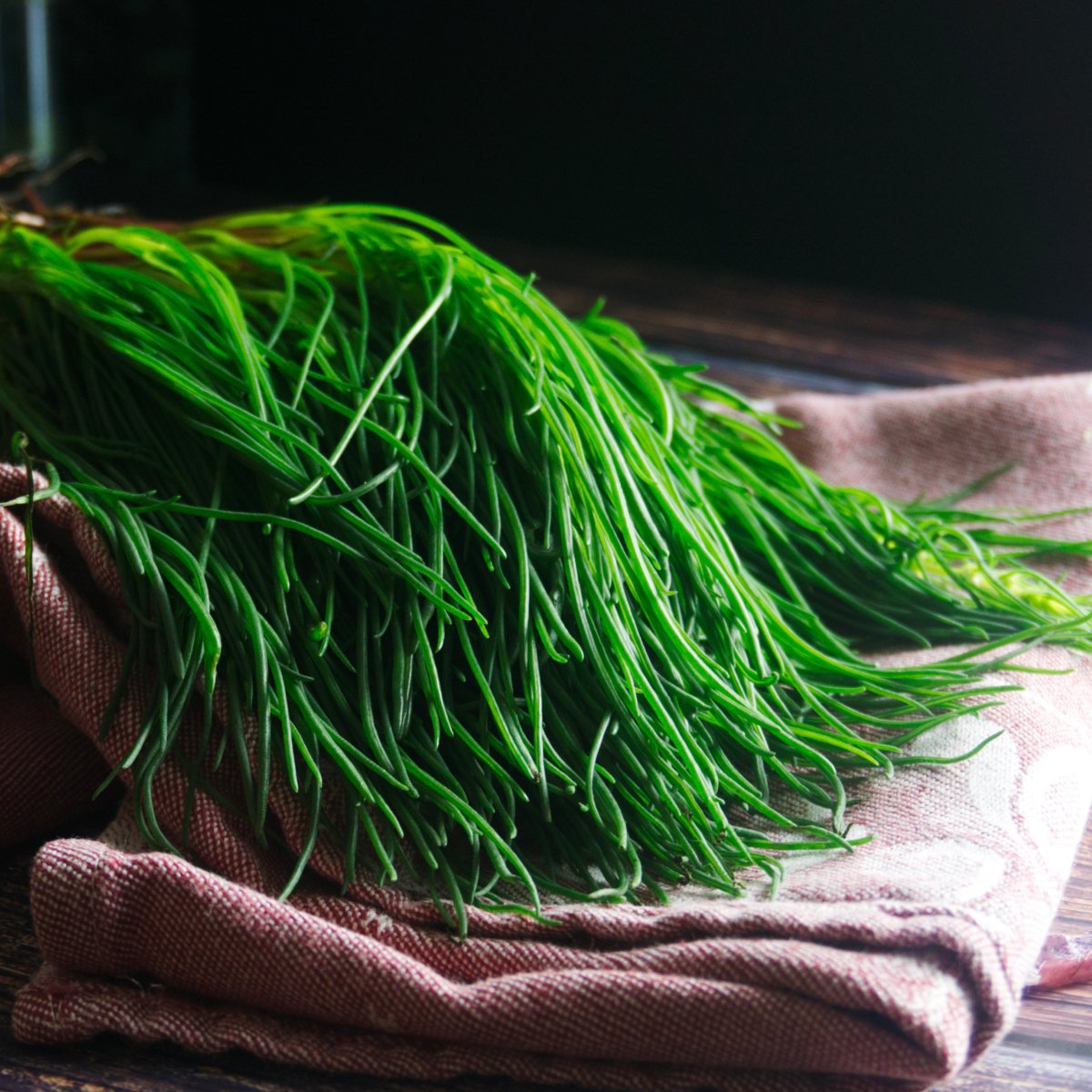 Mönchsbart hat eine algenartige Konsistenz und erinnert auch aufgrund seines leicht säuerlichen, salzigen Aromas an das Meeresgewächs.