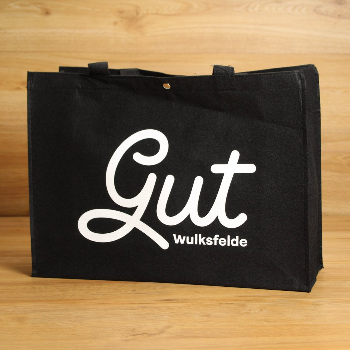 .Der Filz-Shopper "Gut Wulksfelde" überzeugt durch seine umweltfreundliche Herstellung aus zertifiziertem Filz, der aus recycelten PET-Flaschen gewonnen wird. Mit den Maßen 45 x 33 x 14 cm bietet er ausreichend Platz für Einkäufe.