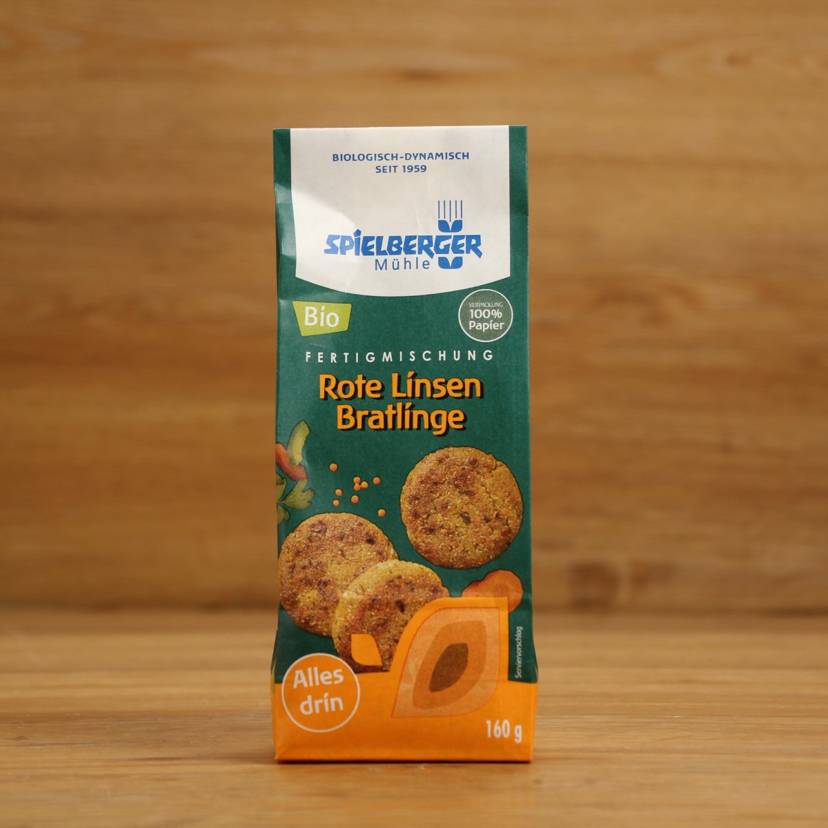 Mit unserer Fertigmischung könnt ihr ganz einfach vegane Bratlinge zubereiten. Dafür müsst ihr nur noch etwas Wasser zugeben, flache Bratlinge formen und goldbraun anbraten. Bratlinge sind gebratene Taler aus Gemüse, Getreide oder Hülsenfrüchten und stellen eine fleischlose Alternative zur Frikadelle dar. Bekannt geworden durch die Reformküche nach Maximilian Bircher-Benner, dem Erfinder des Birchermüslis und der Vollwertkost, bieten Bratlinge vielfältige Verwendungsmöglichkeiten: als Beilage zu Salaten, mit Dip, als Füllung für Gemüse oder als vegetarische Burger. Der Begriff Bratlinge steht für traditionelle und handwerkliche Werte und passt perfekt zu einer bewussten und nachhaltigen Ernährungsweise. Die Mischung aus Roten Linsen, Mais Couscous und Gemüse ist vielseitig einsetzbar, vegan und Reich an Proteinen. Ideal für die gesunde und abwechslungsreiche Vollwertküche, wenn es einmal schnell gehen muss.