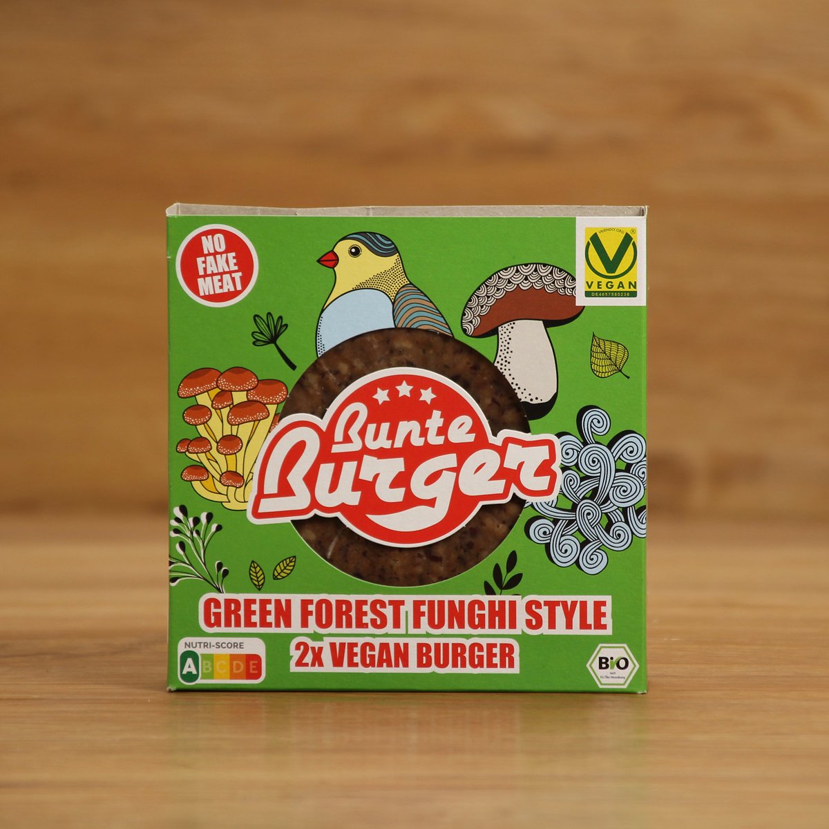 Der Green Forest Funghi-Style Burger Bratling ist eine gesunde, ressourcenschonende und vor allem geschmackvolle Alternative zu herkömmlichen Fleischburgern, ohne dabei Fleischgeschmack zu imitieren. Die einfache Zubereitung und Ausgiebigkeit (2 Stk. je 90g) machen den veganen Burger Bratling auf Basis von Kidneybohnen und Pilzen mit einem Gemüseanteil von über 60% zu einer gesunden, leichten sowie leckeren Mahlzeit. In seiner Konsistenz ist der Burger Bratling innen zart und durch die Bohnen und Pilze leicht stückig. Nach dem Anbraten wird er wunderbar knusprig. Abgerundet wird das Gourmet Convenience (Gourvenience) Erlebnis durch einen authentischen, herzhaft würziger Pilz-Geschmack, der ganz bewusst nicht an Fleisch erinnert.