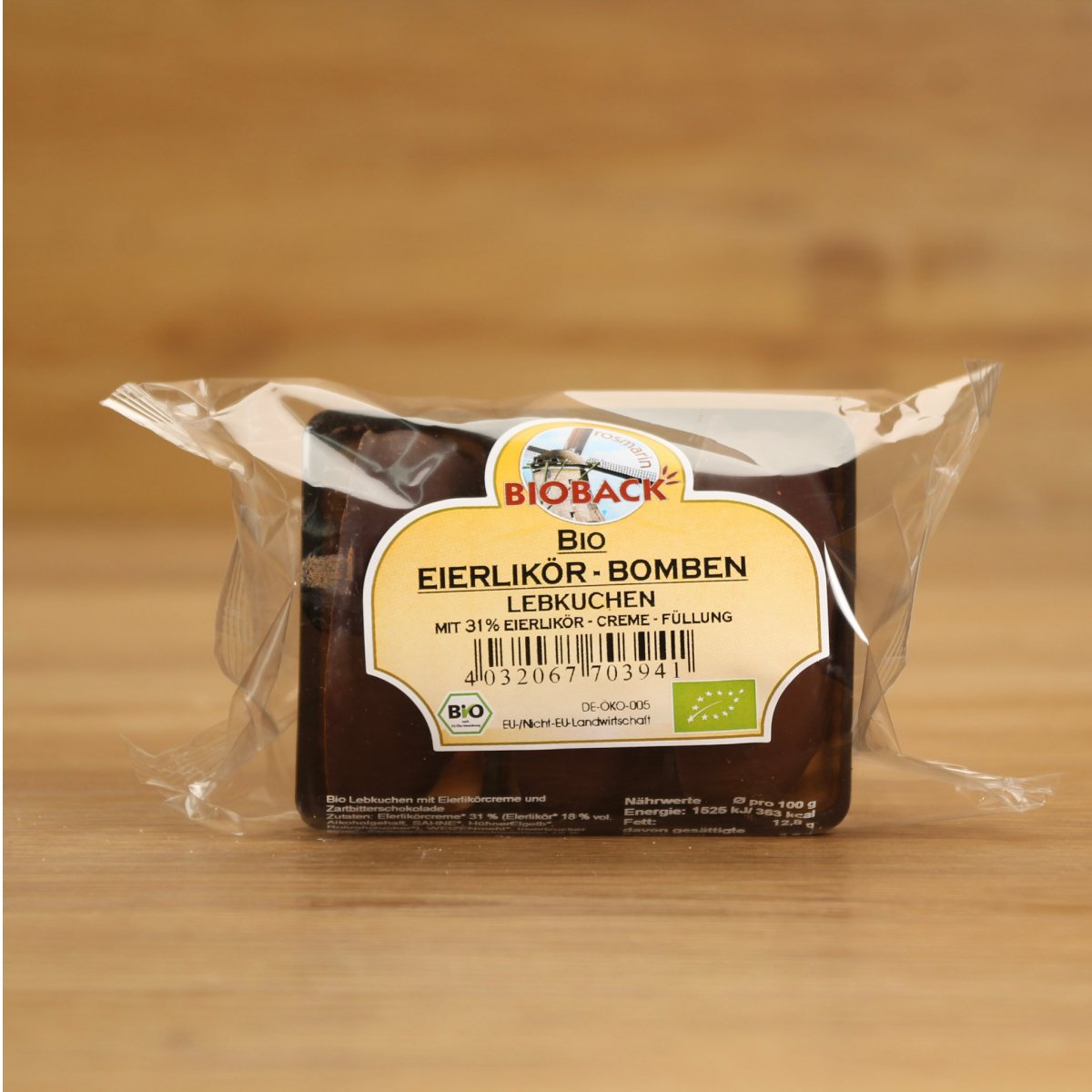 EIERlikörcreme* 31 % (EIERlikör* 18% vol.Alkoholgehalt, SAHNE*, HöhnerEIGELB*, Rohrorzucker*), WEIZENmehl*, Invertzuckersirup*, Zartbitterschokolade* 16 % (Kakaomasse*, Rohrzucker*, Kakaobutter*), DinkelWEIZENmehl*, Palmfett*, Backtriebmittel (Ammoniumbicarbonat, Kaliumcarbonat), Rohrohrzucker*, Karamellzuckersirup*, Säuerungsmittel (Zitronensäure), WEIZENstärke*, Gewürze* (Zimt*, Nelken*, Anis*, Muskat*).