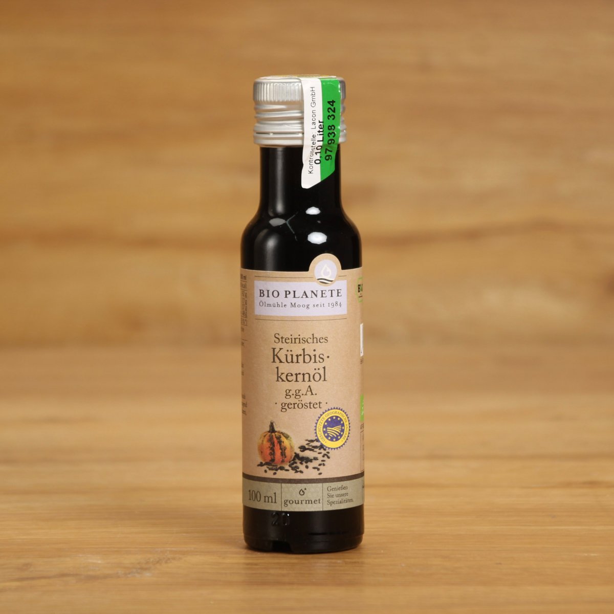 Diese original steirische Spezialität mit der tiefgrünen Farbe wird nach dem traditionellen Verfahren hergestellt. Mit seinem herrlich fruchtigen, leicht herben Geschmack eignet sich Kürbiskernöl hervorragend zum Verfeinern von Gemüse, Salaten, Käse und Eis.