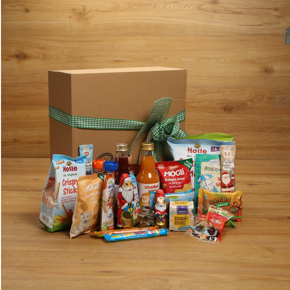 24 hochwertige Leckereien und kleine Präsente aus dem Sortiment, liebevoll in Handarbeit verpackt. Die mit Wulksfelder Stroh gefüllte Kiste wird dabei direkt genutzt, um die einzelnen Geschenke zu präsentieren.