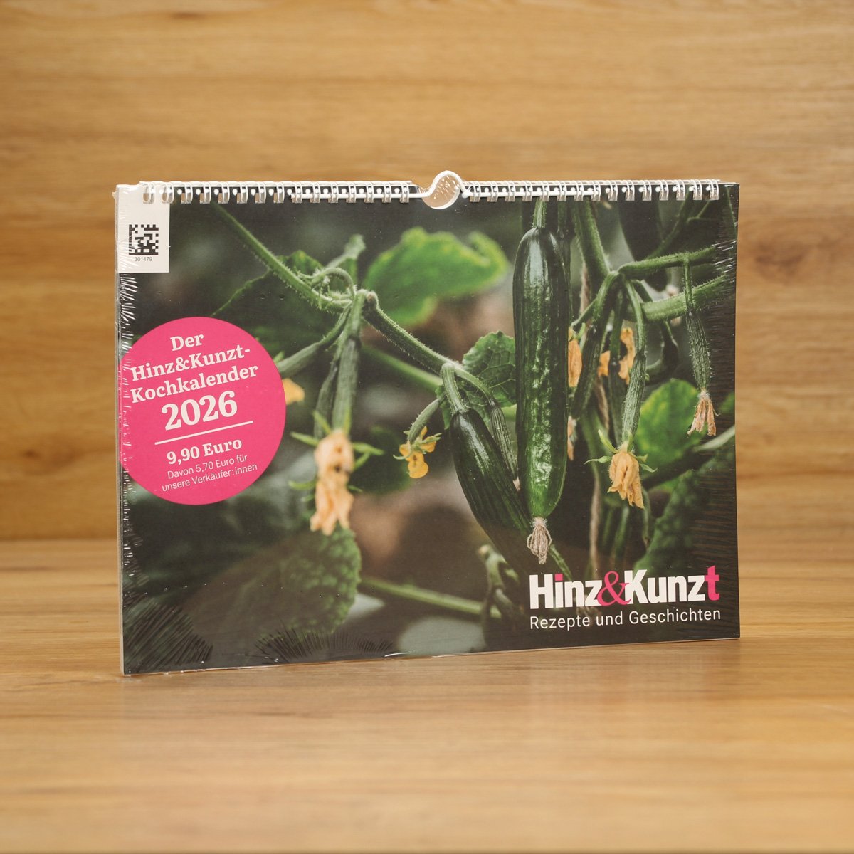 Der Hinz&Kunzt Kalender 2026. Mit tollen Rezepten und schönen Naturaufnahmen. 5,70€ gehen davon direkt an die VerkäuferInnen.