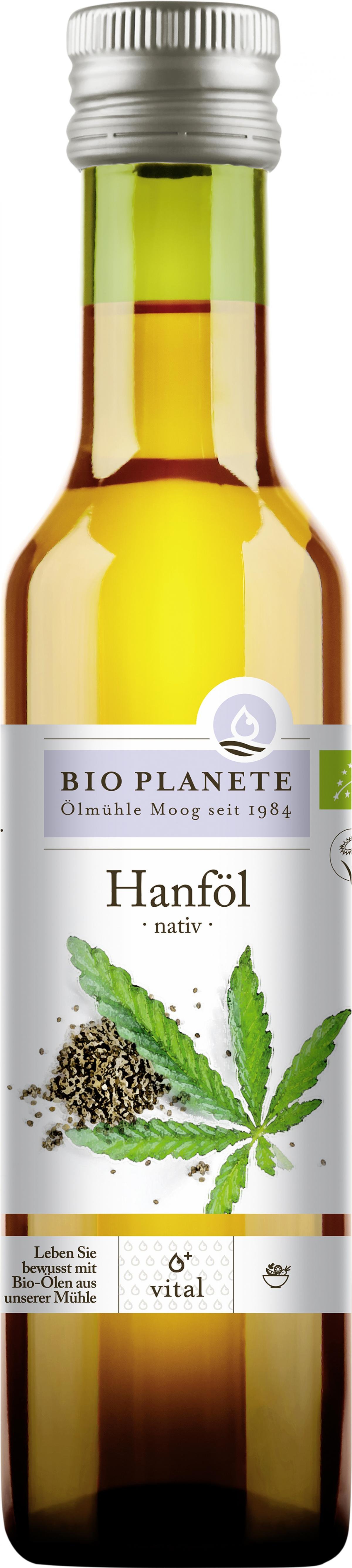 Die Hanfpflanze gehört zu der Familie der Hanfgewächse (Cannabaceae) und wird heutzutage fast auf der ganzen Welt angebaut. Neben China, wo sie ca. 2.800 vor Chr. bereits als Textilfaser genutzt wurde, ist Frankreich heutzutage eines der Hauptanbauländer. Das Hanföl wird durch einmalige schonende Kaltpressung gewonnen. Das native Öl ist besonders reich an mehrfach ungesättigten Fettsäuren, die vom Körper nicht selbst gebildet werden können. Die enthaltene Alpha-Linolensäure trägt bei einer täglichen Aufnahme von 2 g (= 12 ml/1 EL Hanföl) zur Aufrechterhaltung eines normalen Cholesterinspiegels im Blut bei.