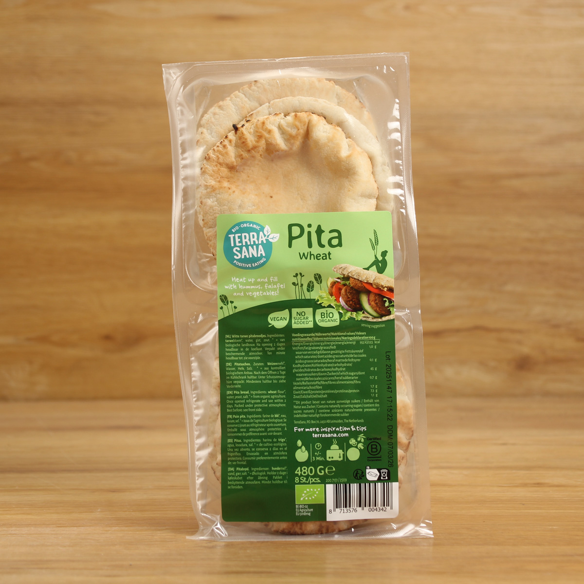 Pitabrötchen kannst du auf endlos viele Arten mit leckerem Gemüse, Feinkost und deinen Lieblingsgewürzen füllen. So genießt du ein herrlich leckeres Bio-Brötchen und triffst gleichzeitig bewusste Entscheidungen. Diese Pitataschen werden traditionell aus gesiebtem Vollkornweizenmehl hergestellt – aromatisch und nach dem Rösten schön knusprig. Perfekt mit Hummus und Pesto.