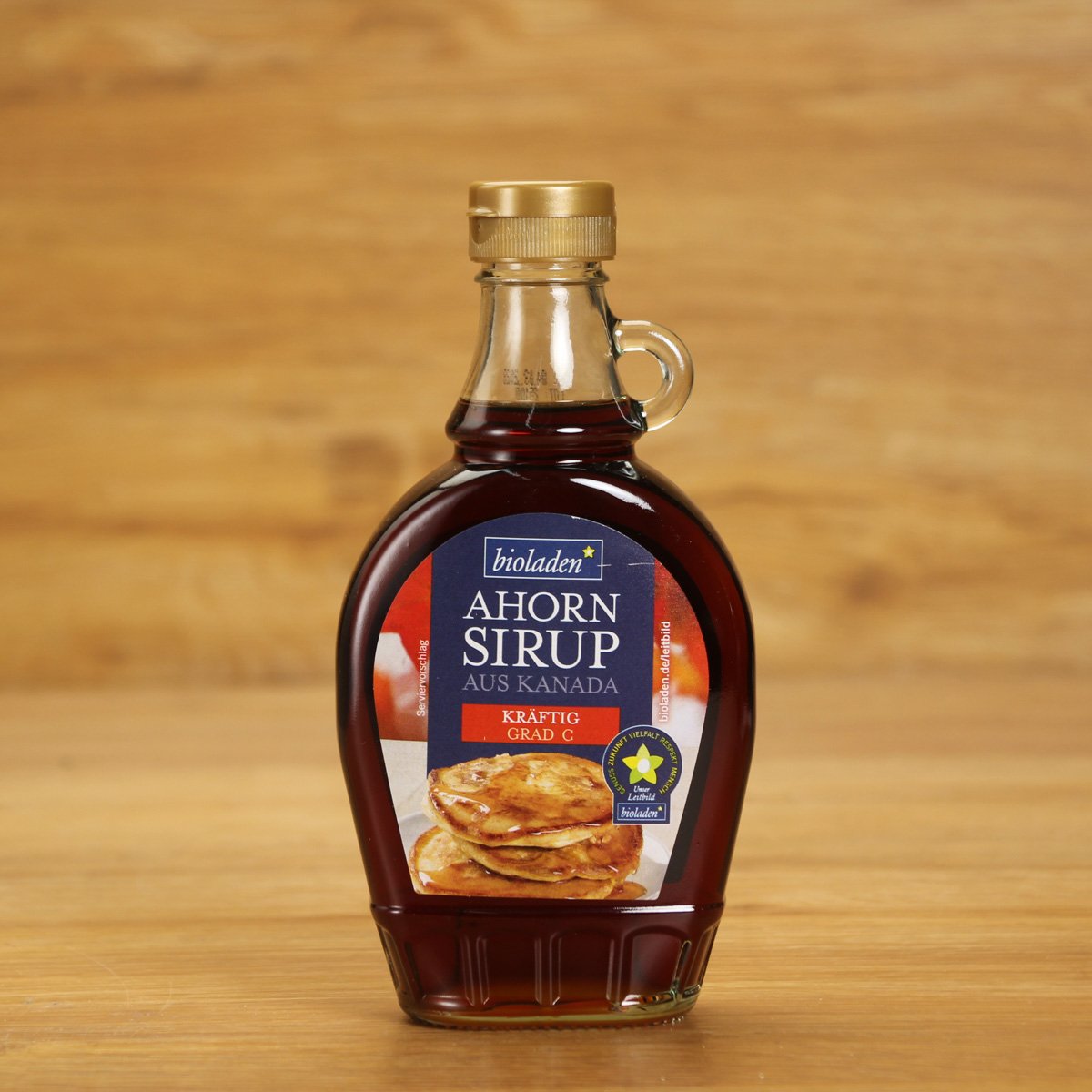 Ahornsirup ist der eingekochte Saft des Zuckerahorns. Geerntet wird nur wenige Wochen im Frühjahr. Dazu werden die Stämme angebohrt, ohne den Baum zu schädigen, und der Saft abgezapft. Die unterschiedlichen Grade bestimmen die Geschmacksqualität und sind abhängig vom Erntezeitpunkt. Zu Anfang ist der Saft heller mit einem fein-milden Aroma (Grad A), zum Ende wird er von Natur aus dunkler und kräftiger im Geschmack. (Aus Kanada. Kräftig im Geschmack.)
