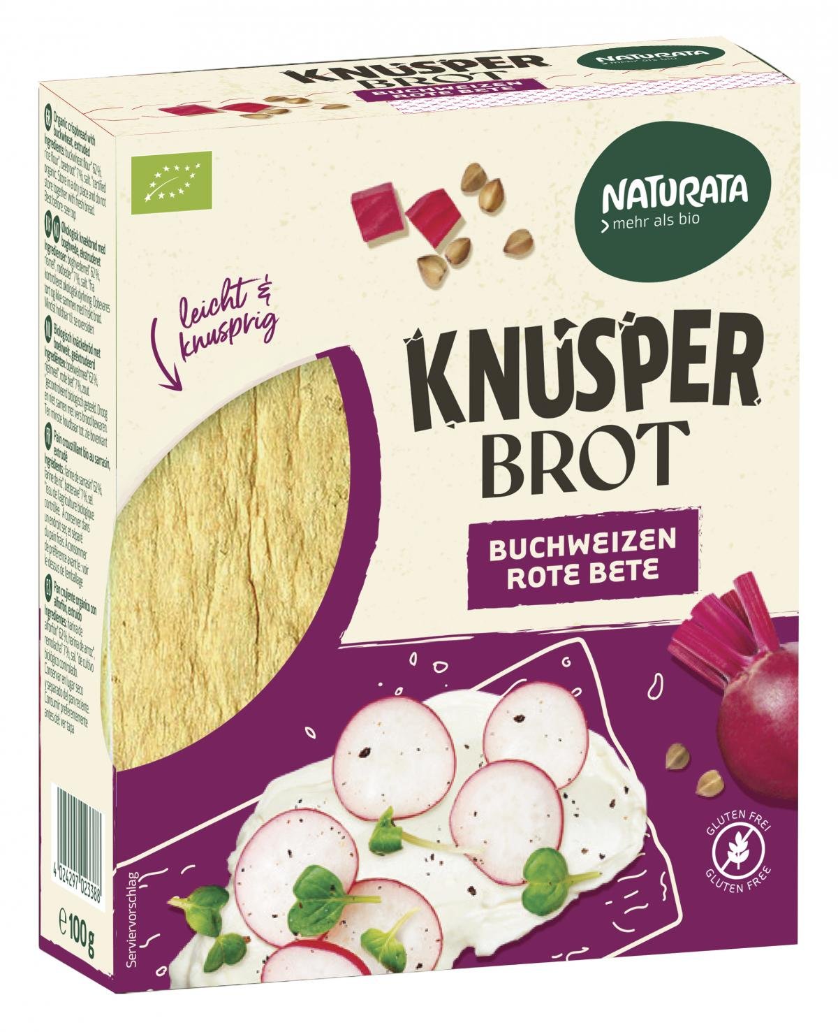 Das Naturata Bio- Knusperbrot Buchweizen & Rote Bete bringt frischen Wind in deinen Speiseplan: Dünn, extra knusprig und mit einer einzigartigen Kombination aus Roter Bete und nussigem Buchweizen. Pflanzlich und glutenfrei - ein knuspriger Genuss für ausgewogene Ernährung und kreative Snackmomente.